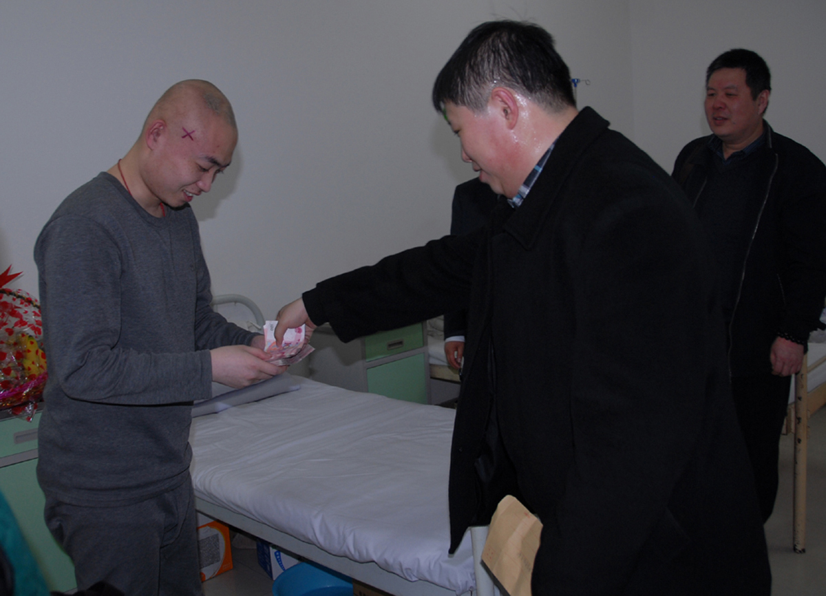 民进企业家支部主任王首宽、民进师范学院支部副主任王勇分别将所属支部会员们的爱心捐款共计1.2万元人民币交给索成德同学的手上,并叮嘱他要安心养病,积极配合医院的治疗,同时调理好心情,争取早日战胜病魔康复出院。接过善款的一刹那,索成德同学眼含热泪,他表示一定会好好治疗,用自己的实际行动回馈社会,回报所有帮助过他的人。