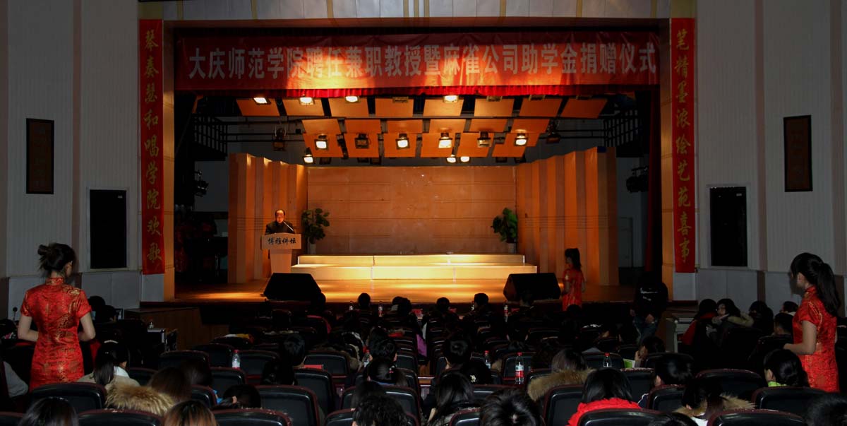 会上宣读了聘任麻雀装饰大庆分公司总经理李玉奎、麻雀装饰大庆分公司执行副总经理吴宝江、大庆动视传媒有限公司总经理赵亢亢、大庆市小勇品牌设计机构总经理刘小勇等企事业单位专家为我校特聘教授的决定。