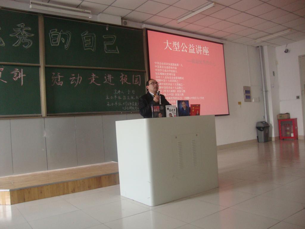 闭幕式上,中国企业培训实战落地第一人、大庆市政协委员、龙行天下教育训练集团董事长于行为现场的200余名有创业梦想的同学作了“做最优秀的自己”的专题报告。报告激情澎湃、引经据典,从大学生应该具备的“六傍能力”、“感恩之心,离财富最近”、“放下自己,才能赢得未来”三个方面为同学们阐述了成功人士的秘诀和思维习惯,并与同学们进行了现场互动交流,不时赢得大家热烈掌声。