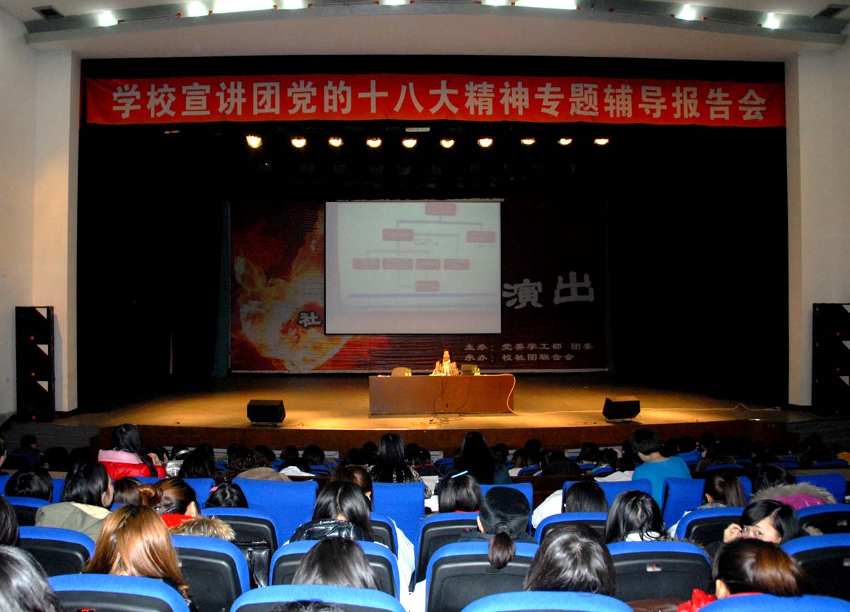 为了学习好、宣传好党的十八大精神,促进全校广大党员干部和师生员工不断深化认识、全面领会十八大提出的一系列新思想、新论断、新观点、新举措,12月19日,学校十八大精神宣讲团成员、校思想政治理论课教研部书记赵桂英,在大学生活动中心为学校师生近千人作十八大辅导讲座。