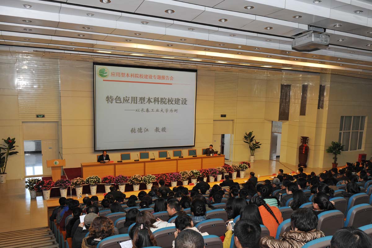根据学校特色应用型本科院校建设大讨论活动安排,10月31日,学校邀请长春工业大学校长张德江教授在百湖讲堂作《特色应用型本科院校建设报告》。报告会由副校长乔志和主持,学校副总师以上领导、机关各部门负责人、基层各单位党政领导以及全体教师参加了报告会。