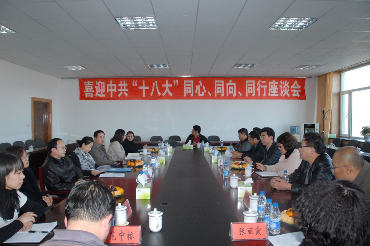 为统一思想,凝聚力量,充分营造团结奋进,热烈和谐的氛围,以良好的精神面貌迎接党的“十八大”的胜利召开,10月25日下午,我校党委统战部组织召开了“喜迎中共“十八大” 同心、同向、同行”主题座谈会。校党委副书记刘恒与学校4个民主党派支部16位代表欢聚一堂,畅所欲言,共议发展。