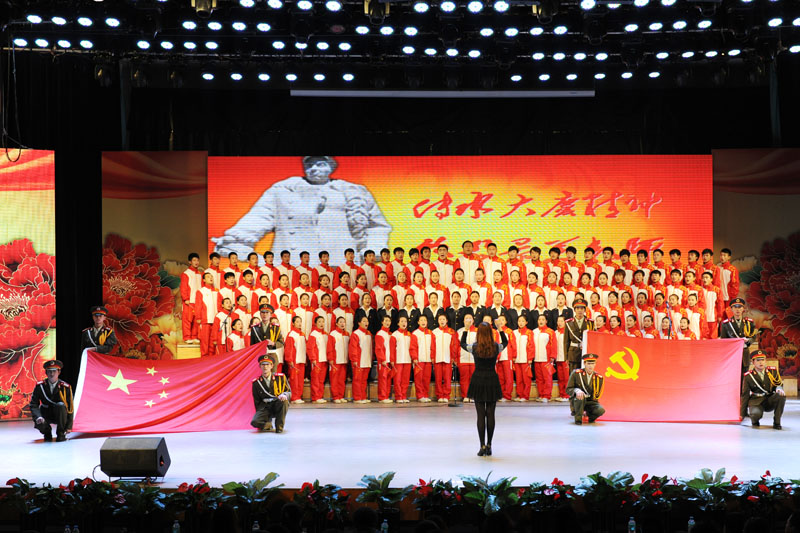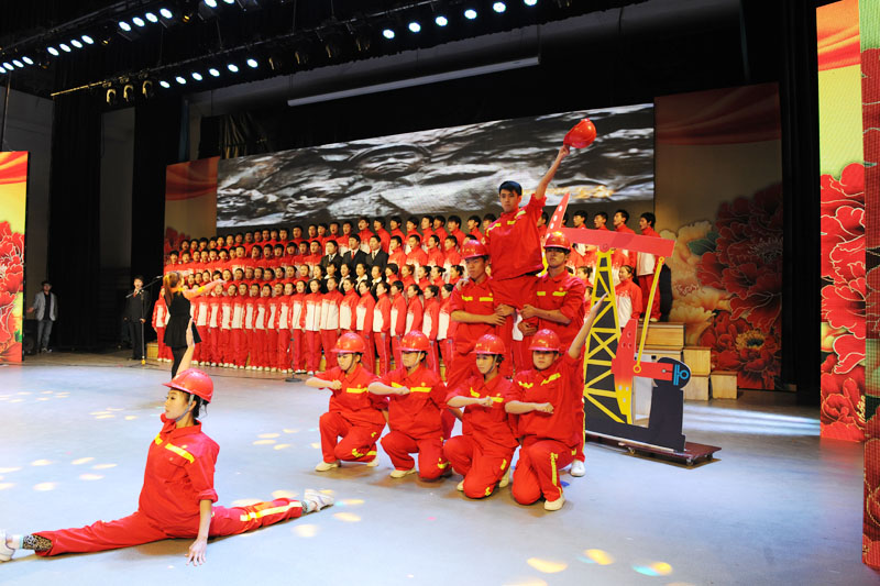 歌曲《我为祖国献石油》、《“三老四严”好》、《铁人队伍永向前》、《百年辉煌铸油田》,一首首慷慨激昂的石油歌曲唱出了对石油工人的崇高敬意和作为石油工人后代的骄傲与自豪;《共和国之恋》、《弹起我心爱的土琵琶》、《满怀深情望北京》、《我的家在中国》,一曲曲耳熟能详的旋律,唱出了在中国共产党的领导下,莘莘学子对伟大祖国美好未来的展望与祝福;一曲《最美的你》带领大家重温了张丽莉的英雄壮举,表达了同学们对最美女教师的深深敬意和由衷祝福。最后,在全体师生同唱《踏着铁人脚步走》的嘹亮歌声中,启动仪式圆满落幕。