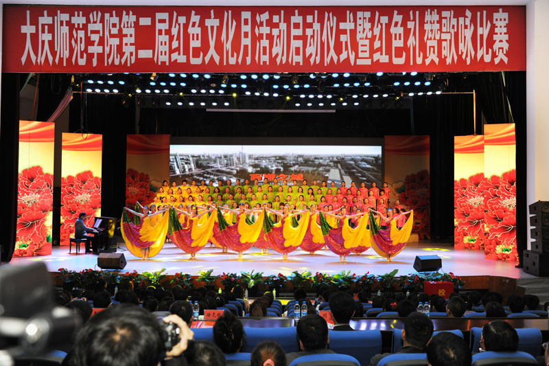 据悉,本届校园红色文化月活动以“传承大庆精神,致敬最美教师,展示青春风采”为主题,将举办“庆师之星”校园红歌赛,“重温红色经典,共抒爱国情怀”红色诗歌朗诵赛,“大庆精神大庆人”大学生演讲比赛,“忆峥嵘岁月,抒革命情怀”红色电影赏析,“永远的感动”绘画、书法比赛,“激情燃烧的岁月”故事会,“传箴言,颂油田”红色优秀短信征集评选,“我眼中的时代变迁”PPT课件大赛,“如火青春”学生运动特长大赛,“高举团旗跟党走”大学生党史国情竞赛,“大庆精神铁人精神在身边”拍客大赛等一系列活动,旨在培养青年学生爱党爱国爱校情怀,促进大庆精神铁人精神与时代精神相结合,坚定创建特色应用型本科院校的信心。