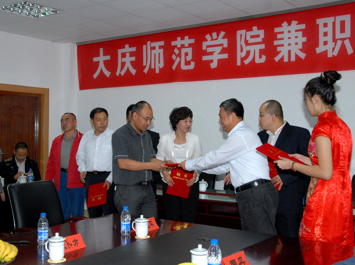 仪式上,副校长乔志和宣读了聘任大庆市旅游局局长刘秀丽、大庆国际报业旅行社总经理何百刚等企事业单位专家为我校经济管理学院兼职教授的决定,校长徐克明为获聘兼职教授颁发了聘任证书。