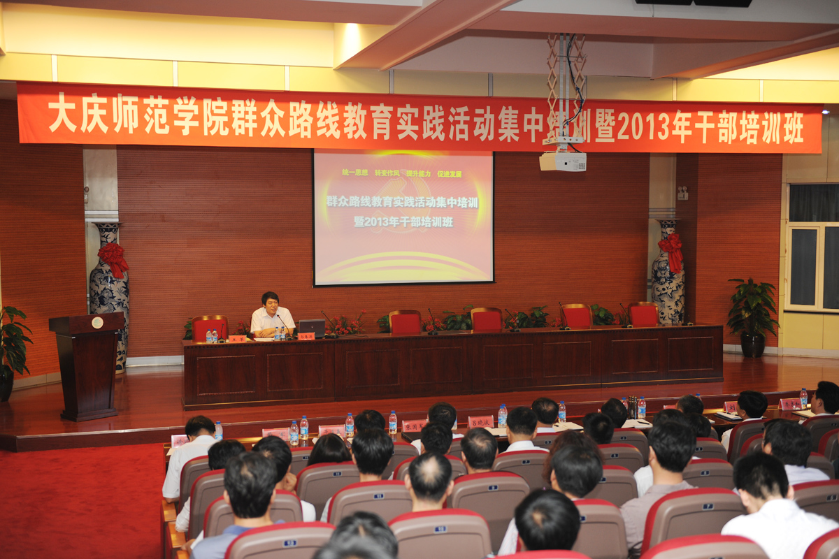 校长徐克明在开班典礼上讲话,他说,按照中央、省委和油田党委关于开展党的群众路线教育实践活动的有关要求,为进一步提高干部的政治素质、业务水平和领导能力,进一步转变干部的工作作风,经学校党委研究决定,举办教育实践活动集中培训暨2013年干部培训班。通过这次培训,扎实推进党的群众路线教育实践活动,加强作风建设,提升领导能力,大力推进特色应用型本科院校建设。他对此次培训提出几点要求:一是要严格要求,遵守纪律。二是要全心投入,静心学习。三是要学用结合,保证效果。