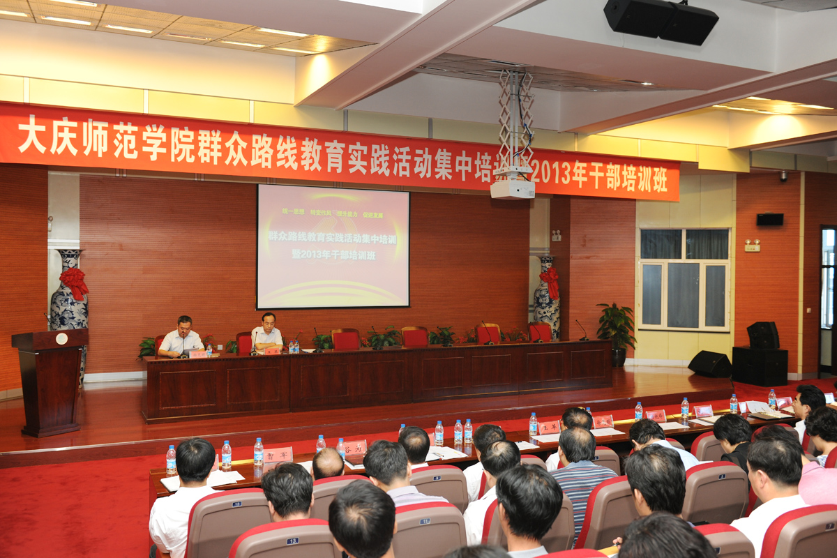 本期群众路线教育实践活动集中培训暨2013年干部培训历时2天,组织观看了《实干兴邦,反对形式主义》视频教学片;邀请了华中科技大学博士生导师刘献君教授作了题为《如何推进科学决策》的报告,组织召开了座谈会,就如何进行院校管理进行了深入的交流;校党委副书记、纪委书记王革为培训学员作了《关于加强党的执政能力建设》的讲座,对如何提高党的执政能力等问题进行了深入阐述;校长徐克明作了《学校加快转型发展的再认识、再思考》的报告,对学校转型时期的重点工作进行了安排部署;教育科学学院王晖教授等五名干部分别就教学管理、人才教育培养、党政密切配合促进事业发展等方面分享了工作的做法和体会;学生工作部郭春满部长解读了学校党委文件《“关爱中成长”教育实践活动方案》。