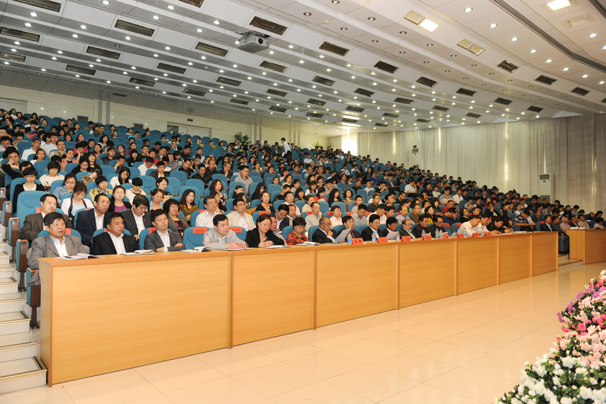 5月22日下午,我校在百湖大讲堂召开2013年度教学工作会议,会议全面总结2012年我校教学工作取得的成绩,并对2013年教学重点工作进行了部署。学校总督学以上领导,各院(部)党政领导,机关各部门负责人、科级以上干部,教师代表近800人参加了会议。