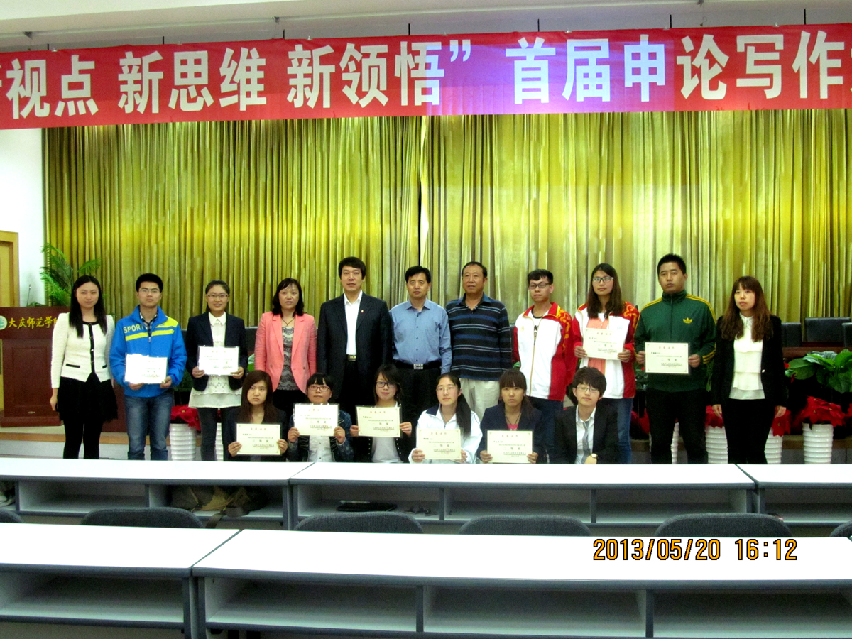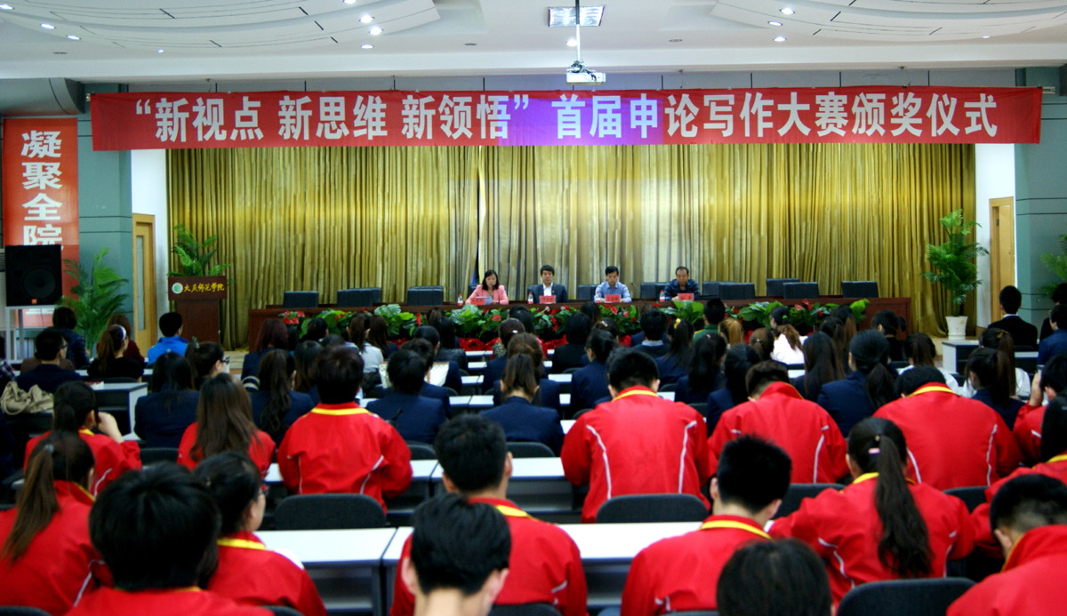 5月20日下午,我校首届申论写作大赛颁奖仪式在铁人讲堂举行。校长助理、法学院院长丁启明,校学生工作处、法学院等单位相关领导出席了此次颁奖典礼。