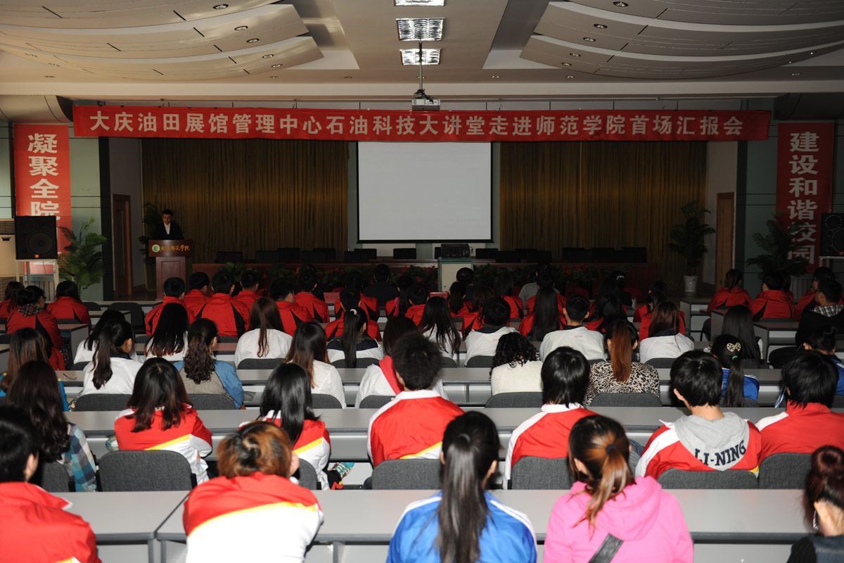 宣讲员高彬以《追溯万年沧海变迁,探毫厘空间——走进石油》为题,为大家讲解了松辽盆地的石油生成演化进程,揭示了石油与人们日常生活之间的密切关系,展现了大庆油田50年来自主创新的发展历程及取得的辉煌成绩。翔实丰富的资料、通俗易懂的语言,让身在油城的大学生们提升了对石油探采技术的认识,进一步激发莘莘学子热爱油田、奉献油田的崇高情怀。同学们纷纷表示,今后一定踏实工作,加强学习,为大庆油田的可持续发展和永续辉煌贡献自己的聪明才智。
