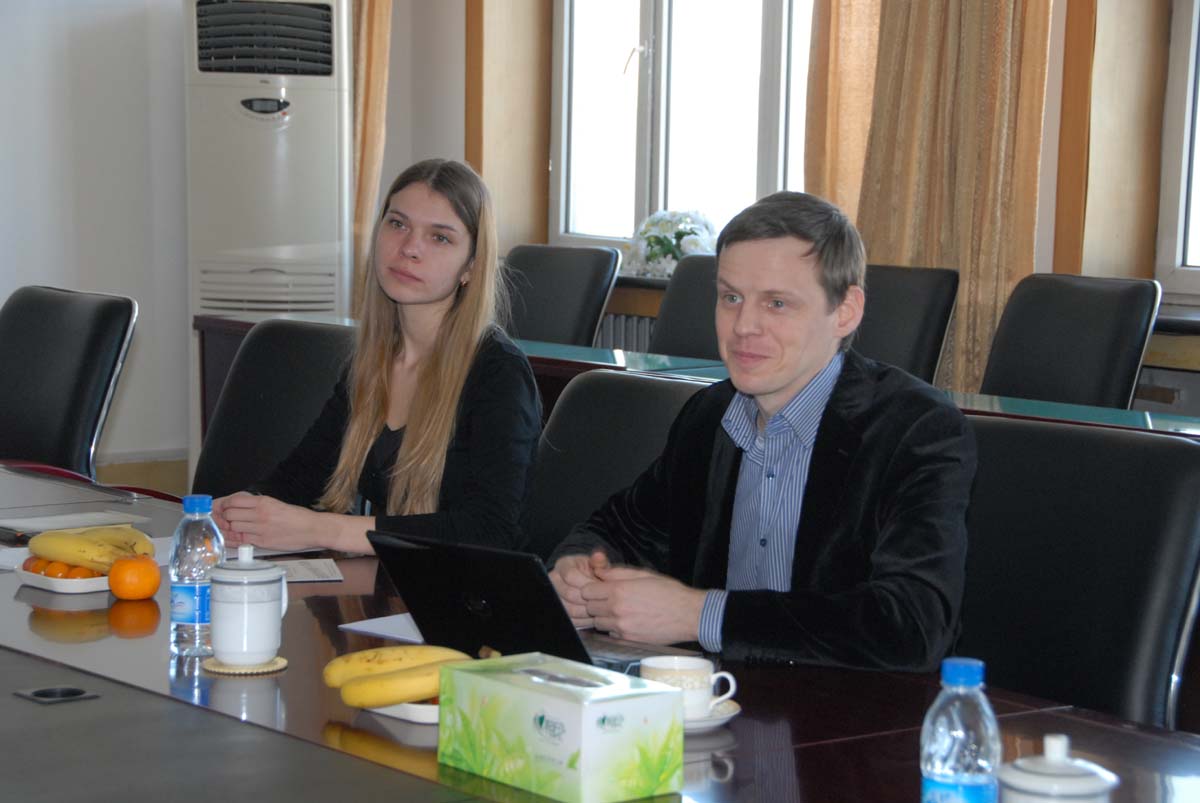副校长杨锐锋,国际合作与交流处及相关学院负责人与代表团进行了友好会谈。尼古拉处长表示,布拉戈维申斯克国立师范大学对化学化工专业的合作办学项目将会给予全力的支持。针对5月份布拉戈维申斯克国立师范大学学生来大庆进行教学实践事宜,教务处、化学化工学院认真听取了布师大方面的要求,并就安排该校学生赴大庆化工集团等企业进行实习的相关事宜与尼古拉处长进行了交流。同时,双方还就扩大互派留学生、短期进修生的数量,互派教师访学、进修,等诸多问题做了细致深入的探讨,并达成了共识。