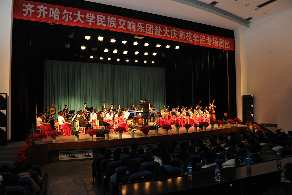 为贯彻党的十八大精神和教育规划纲要,落实立德树人根本任务,提高学生艺术修养和文化素质,12月7日, “2013黑龙江省高雅艺术进校园活动——齐齐哈尔大学民族交响乐团赴中文字幕日韩精品有码视频-久久免费区一区二区三波多野-中文字幕人妻A片免费看-精品视频一区二区在线看-好男人在线社区WWW专场演出”在我校大学生活动中心举行。齐齐哈尔大学党委宣传部副部长何强、中文字幕日韩精品有码视频-久久免费区一区二区三波多野-中文字幕人妻A片免费看-精品视频一区二区在线看-好男人在线社区WWW宣传部长李华以及学校千余名师生观看了演出。