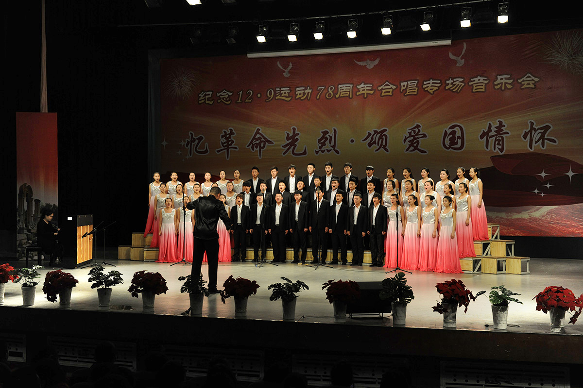 12月4日,由党委宣传部、党委学工部主办,音乐与舞蹈学院承办的纪念12·9运动78周年合唱专场演出在大学生活动中心隆重举行。校领导徐克明、杨锐锋、吕晓波、刘恒、乔志和以及各学院领导,部分教师学生观看了演出。