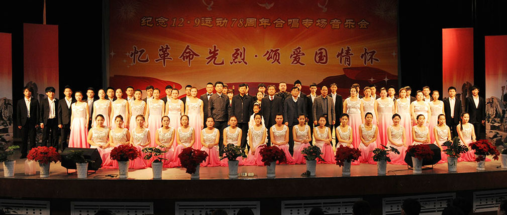 参加合唱演出的演员由音乐与舞蹈学院声乐表演专业学生组成。演出以怀念革命先烈,歌颂爱国情怀,纪念12·9运动为主题,共分为序和《灿烂阳光》、《乡音乡情》、《飘扬的旗》三个章节。