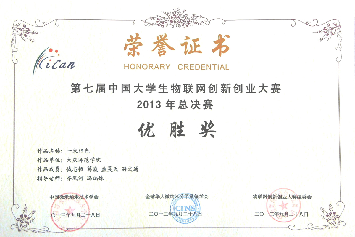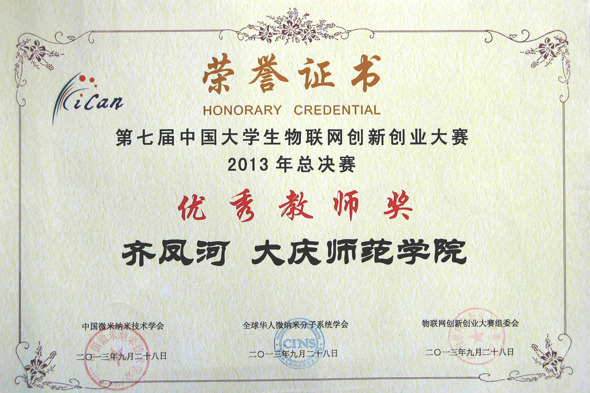 今年国赛好成绩的取得离不开我校领导的高度重视、各职能部门的大力支持以及物电学院上下的紧密配合。物电学院以技术应用型人才培养为本,大力开展学科竞赛活动,目前已经形成了成熟完整的学科竞赛组织管理体系,构建了一支老中青结合的优秀指导教师团队。2013年除全国大学生电子设计竞赛外,还组织学生参加了由教育部计算机教育指导委员会主办的教育部质量工程项目——第七届中国大学生iCAN物联网创新创业大赛并获全国优胜奖1项和省级奖项7项,齐凤河老师被授予优秀教师奖。
