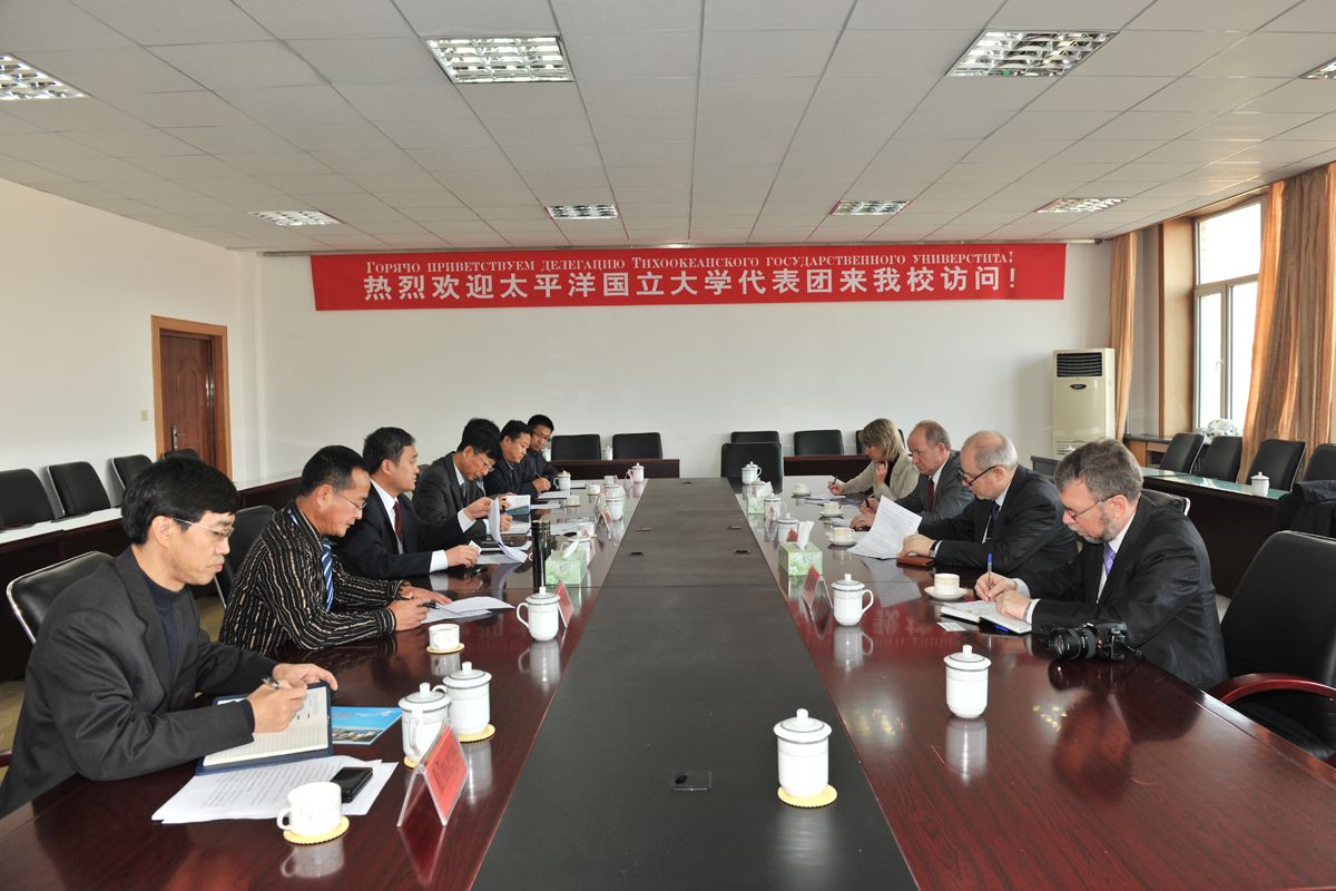 会见期间,双方校长就互派留学生、短期进修生,教师互访,学生读研等事项进行了详细的磋商。双方决定自2014-2015学年起,太平洋国立大学每年派出一名俄语教师来我校任教;双方共同举办3+2合作办学项目,联合培养本科生及研究生;在双方相关专业共同举办国际研讨会;联合中俄其他高校,在湿地研究方面共建研究中心,以研究中心为平台,实现双方的科研合作。