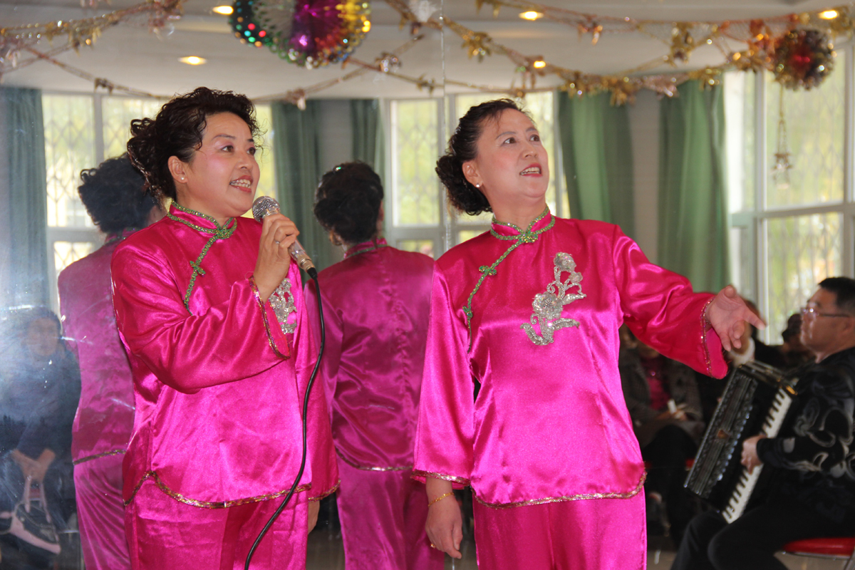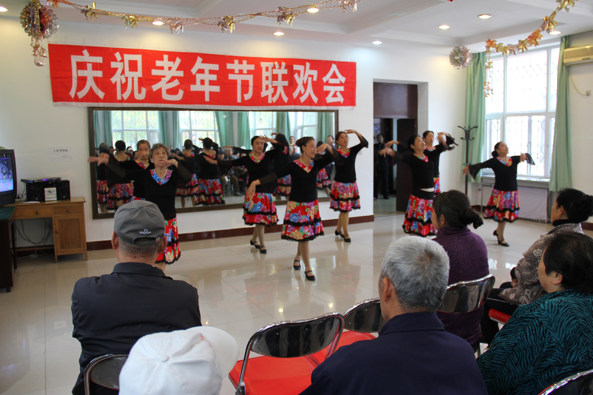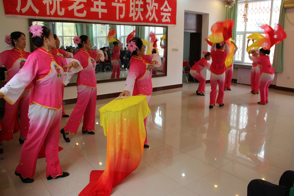 联欢会上,老同志们自编自演的文艺节目为节日增添了欢乐的气氛,一曲曲悠扬的歌曲颂扬了祖国64年取得的辉煌成就,一个个欢快的舞蹈表达了老年朋友对党的深情厚谊,舞蹈《开门红》充分展现了老同志们热爱生活、热爱集体、自强不息的精神面貌。同时,部分老同志还为大家表演了笛子独奏、诗歌朗诵、二重唱等节目。