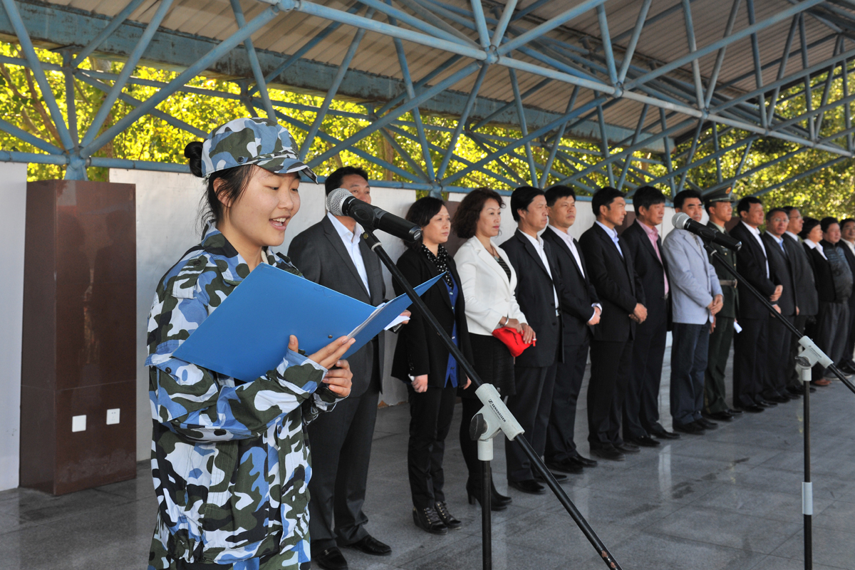 大庆市武警支队穆春青少尉代表军训教官讲话。他向全体参训学生提出三点要求:一要提高认识,勇于吃苦;二要严密组织,提高质量;三要努力进取,争创佳绩。教育科学学院冯雪同学代表全体参训学生表态,她表示军训中努力做到一切行动听从指挥,服从命令,严格训练,严格要求,珍惜军训生活,出色完成军训任务,展示2013年级学生的良好风貌。随后,武装部领导简要回顾过去一年国防教育工作取得的优异成绩,对参训同学提出三点希望:一是以饱满的政治热情、正确的学习态度积极参加军训;二是以军人的标准严格要求自己,服从命令,听从指挥;三是掌握基本军事技能和军事理论,完成教学计划规定的内容。此次军训是学校教育教学的一项重要内容,也是对新生的一次磨练和考验,将成为每个大学生人生道路上一段宝贵的经历。