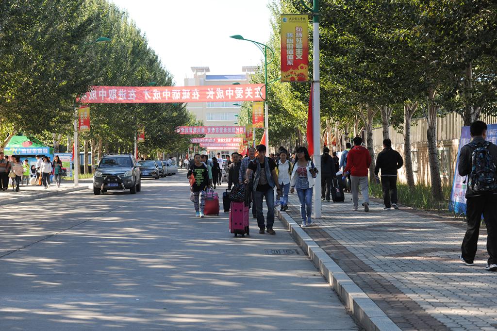 在接待广场,各学院接待处工作人员紧张地对新同学的入学资格进行审查,现场井然有序。
