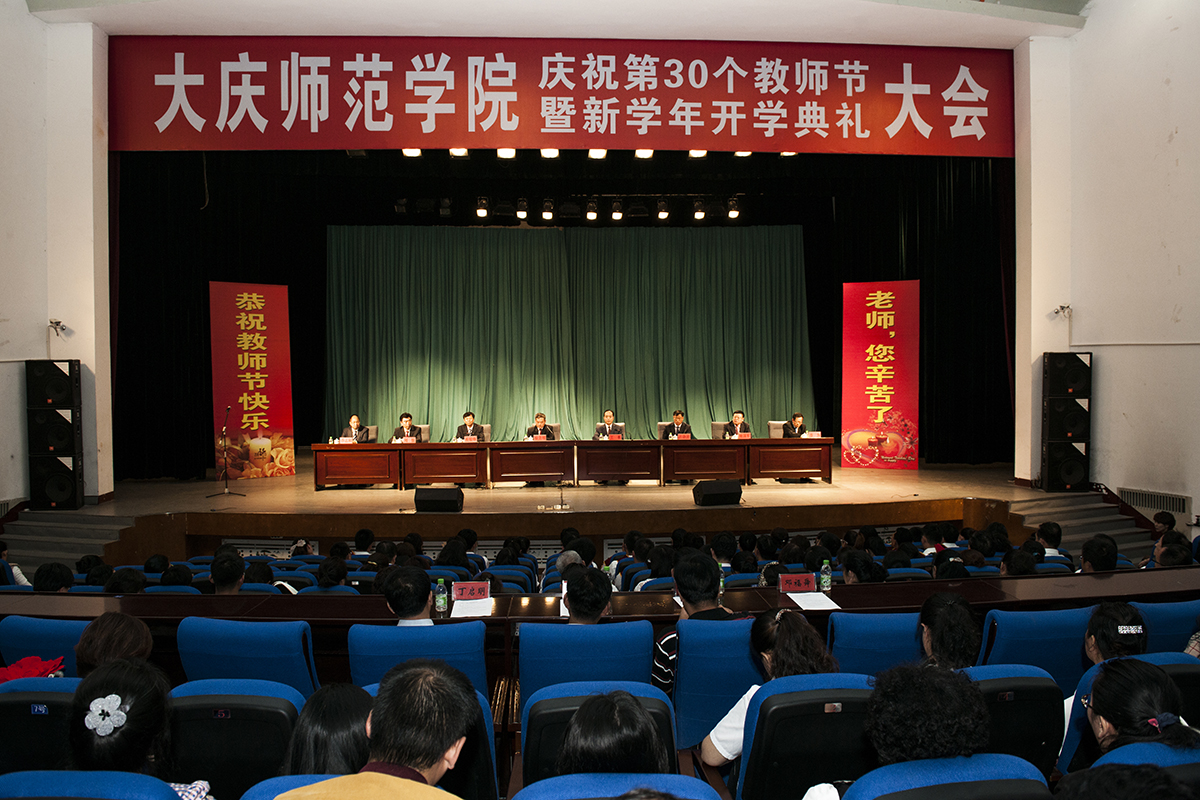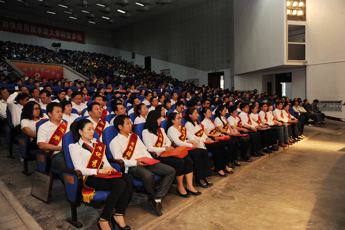 2014年9月9日下午,我校隆重召开庆祝第30个教师节暨新学年开学典礼大会。徐克明、王革、杨锐锋、吕晓波、刘恒、张国军、乔志和、谷为等校领导出席大会。荣获省高校模范教师、省高校优秀教师、省高校师德先进集体、省高校师德先进个人以及校级先进单位、先进工作者代表身披绶带,胸戴红花在前排就座。全校1000余名师生代表参加了庆祝大会。