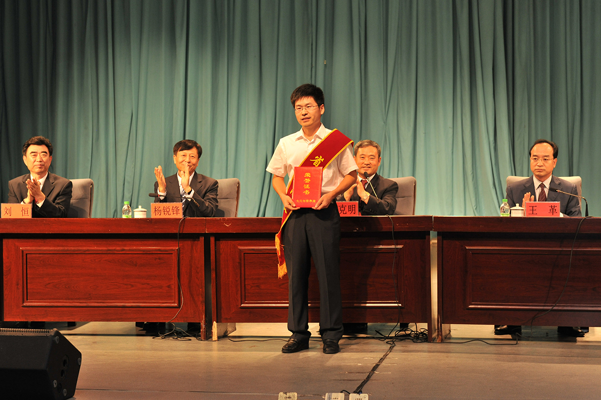 在悠扬的进行曲中,校领导分别为省高校模范教师、省高校优秀教师、省高校师德先进集体、省高校师德先进个人,校级先进单位、先进工作者代表颁发奖牌和证书。