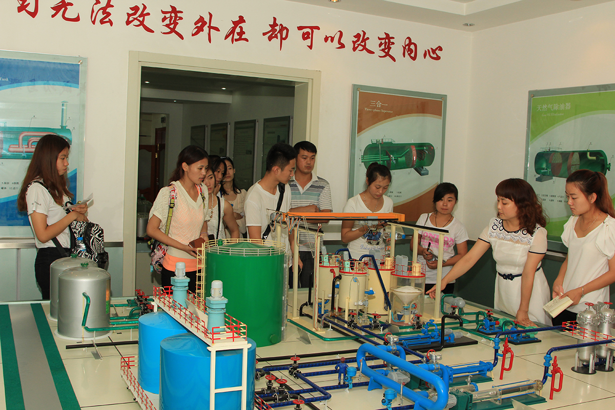 社会实践团分别来到第三采油厂培训中心、第二油矿北十五联合站参观学习考察,通过讲解员的详细讲解,同学们不仅学习到了油田人的“事不过夜”的工作作风、“今天永远是起点”的工作理念,还被以“千人一支笔”为代表的油田企业文化深深震撼,上了一堂生动的“油田开发”课。