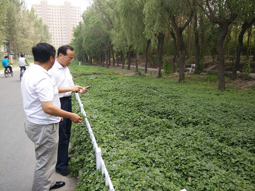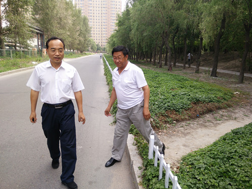 学校党委高度关心重视后勤绿化工作,2014年7月9日,王革书记亲自带领后勤服务总公司领导以及负责绿化工作的干部,来到油田景园公园附近,实地考察、调研绿化植物引进工作。
