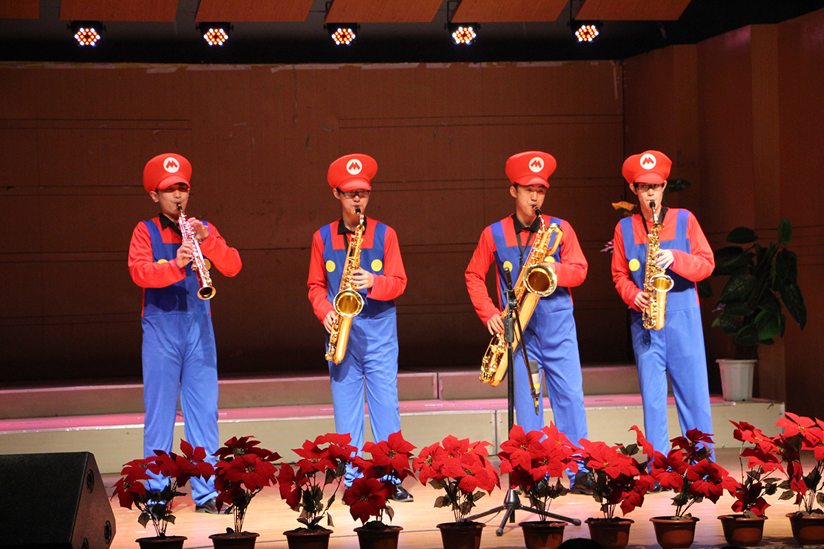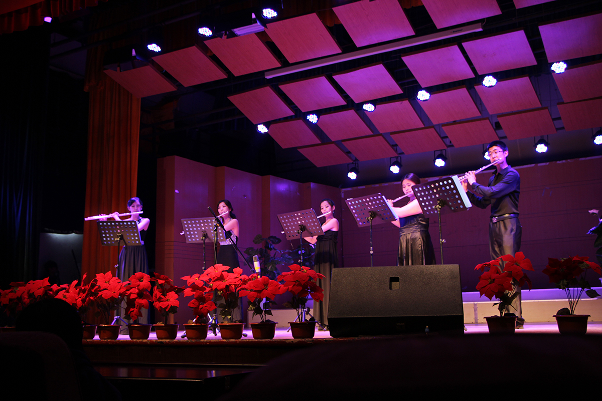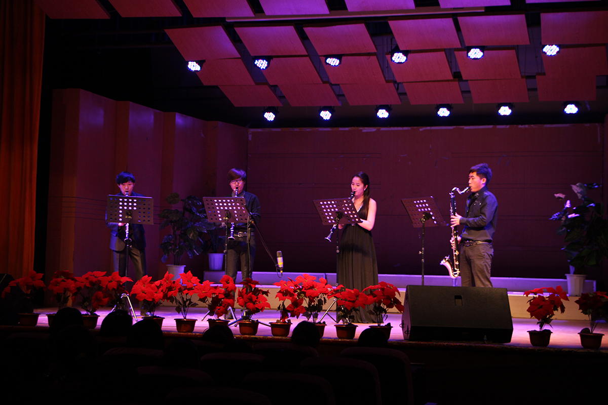 音乐会在打击乐自创重奏曲目《葵》的精彩演奏中开场,随后,同学们把萨克斯四重奏《中国小调》、长笛五重奏《D大调游戏曲》、单簧管四重奏《波基上校》、长笛与吉它二重奏《咖啡天堂》等不同风格的重奏作品,用微妙细腻的手法,粗犷豪放的表演方式展现给现场观众。最后,萨克斯四重奏《超级玛丽》将整场音乐会推向了高潮。