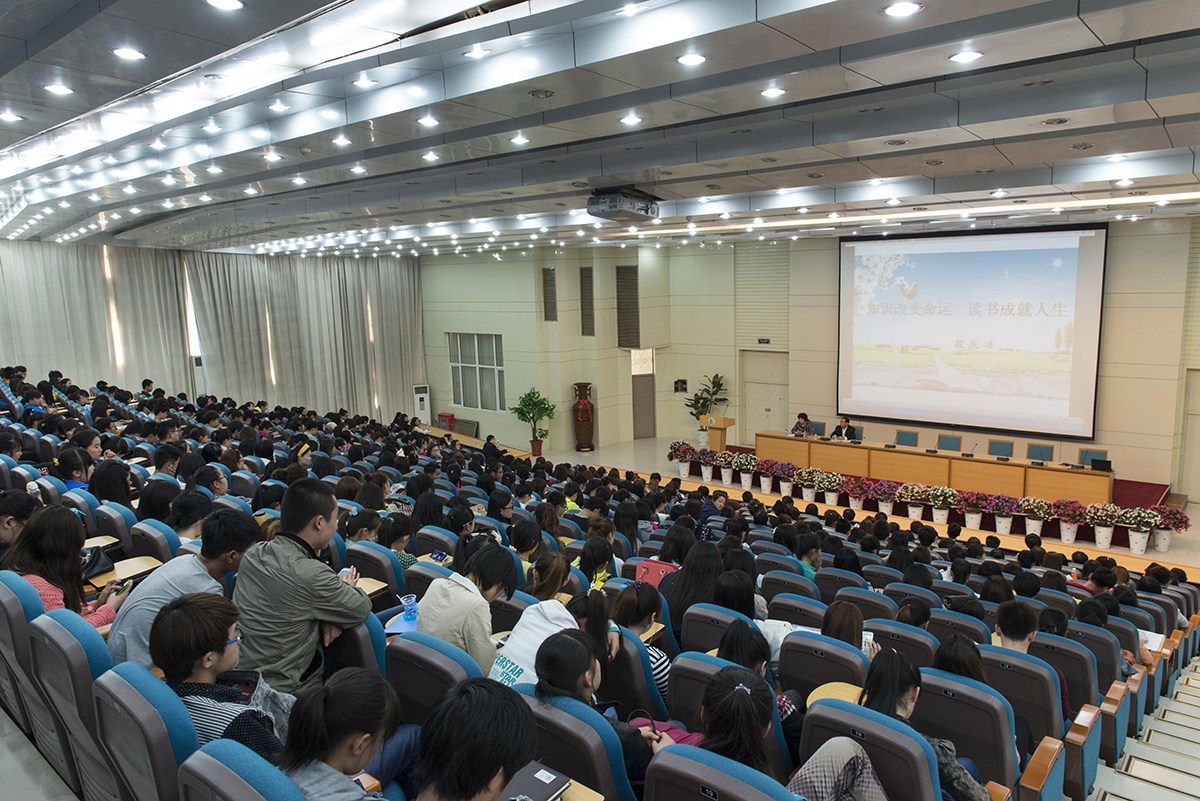 2014年4月23日下午,为了迎接第19个世界读书日,图书馆邀请校统战部部长、著名作家殷庆功莅临我校百湖讲堂,做了一场题为“知识改变命运,读书成就人生”的大型读书报告会。