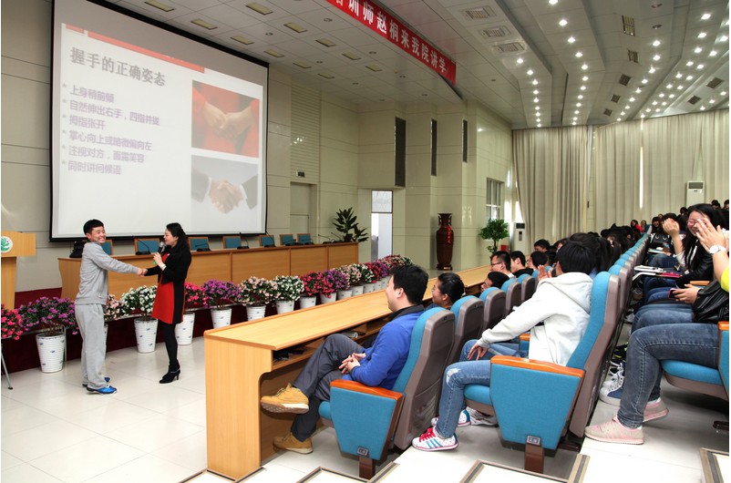 为了培养学生良好的职业礼仪,4月9日,招生就业处邀请中国形象设计协会礼仪培训师、资深企业形象管理顾问及礼仪顾问、赵桐礼仪工作室创始人赵桐来我校作职场礼仪专题讲座。