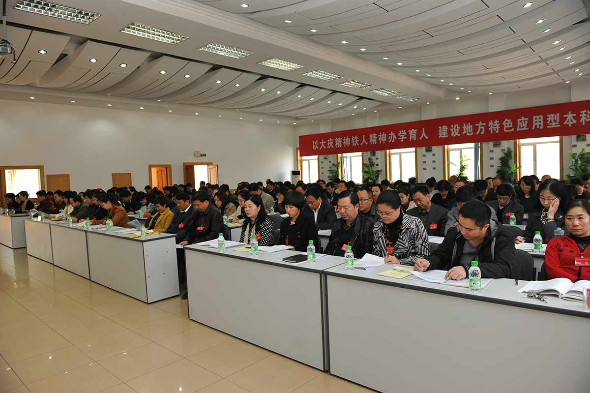 对如何围绕落实教代会精神,推进学校新时期的新发展,他提出六点意见。一是认真学习贯彻党的十八届三中全会精神,进一步增强改革创新的责任感和紧迫感;二是全面落实教代会各项部署,推动学校向应用技术型大学转型发展;三是突出办学特色,着力培养适应社会发展需要的高素质人才;四是秉承开放的办学理念,在深化合作中谋求更好更大发展;五是弘扬大庆精神、铁人精神,汇聚形成推进改革发展的强大动力;六是进一步加强领导班子和干部队伍建设,强化转型发展的组织保证。