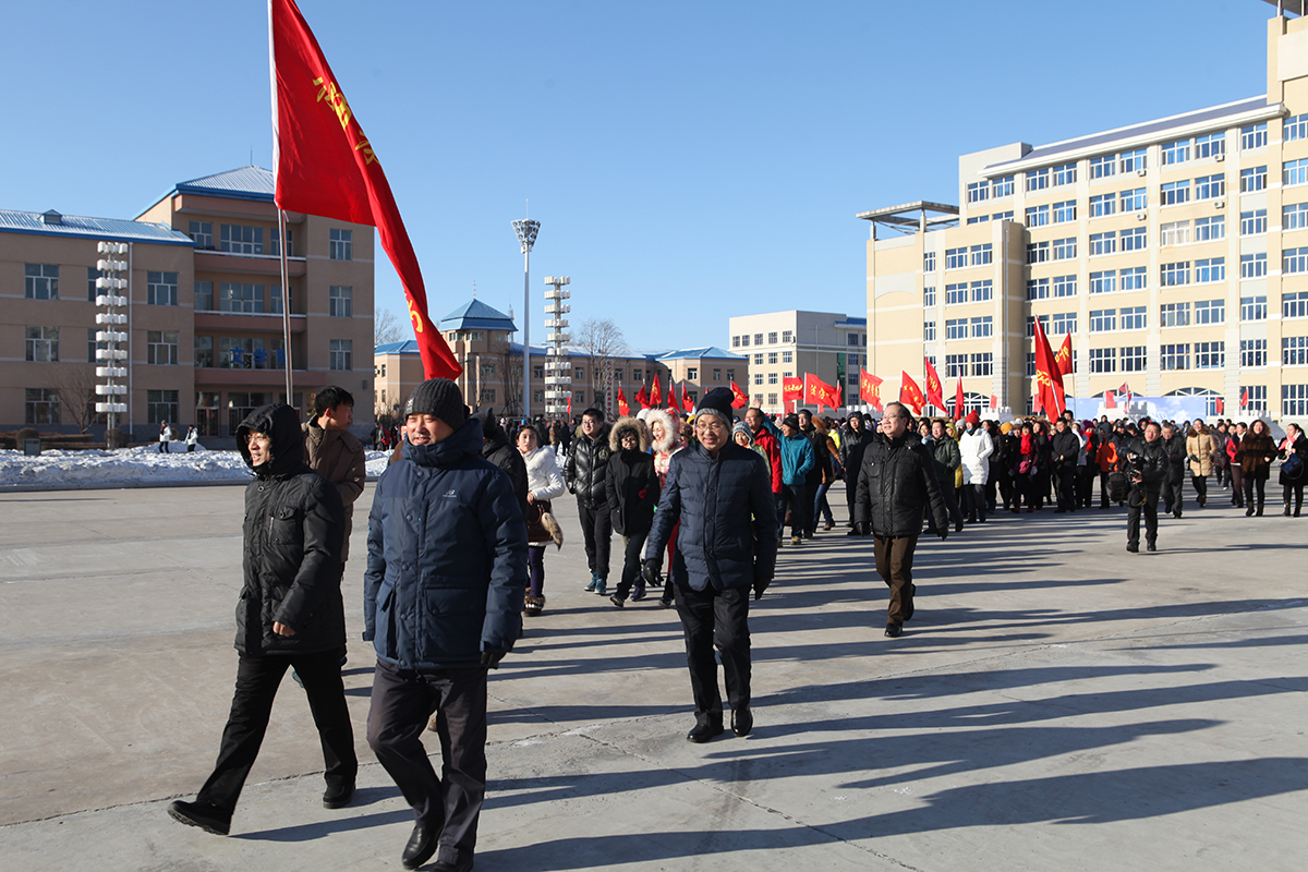 2015年1月7日,随着发令枪响,我校健康永远在路上“冬天的浪漫”——挑战两小时·10公里徒步行全民健身活动火热开启。