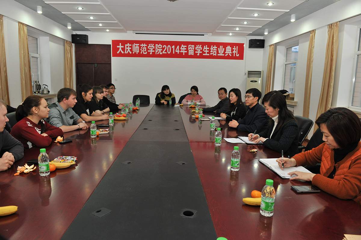 12月19日下午,国际合作与交流处、文学院共同举办2014年外国留学生结业典礼。国际合作与交流处处长马天尊、文学院院长赵丽向留学生们颁发了结业证书及成绩单,希望留学生们学好中国文化,努力提高汉语水平,回国后成为中国文化的传播者。同时希望同学们回到各自国家后,能够心系母校,支持学校的发展。