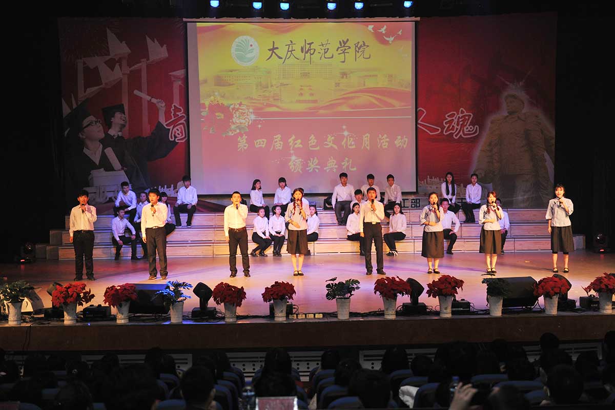 第四届红色文化月活动在学生工作部、团委与各学院团总支的共同努力下,历时36天,共举办了“红色礼赞”歌咏比赛,“礼敬中华优秀传统文化”PPT大赛,“追红色记忆,传铁人精神”红色短信、微博、微信、微分享征集评选活动,“一红到底”知识竞赛,“博学雄辩 薪传大庆魂”大学生辩论赛,“红色韵,铁人情”旅游导游中英文解说大赛,“永远的感动”书法篆刻、摄影比赛,“重拾红色记忆,再讲铁人诗话”普通话风采大赛,“庆师好声音”经典歌曲比赛等9项系列活动,共有1630余名选手参赛,约有13000人次受到教育。整个文化月活动比赛共评出一等奖16个,二等奖33个,三等奖58个,优秀奖46个。文学院、教师教育学院、计算机科学与信息技术学院、物理与电气信息工程学院获得优秀组织奖;化学化工学院、生命科学学院、法学院、体育学院获得最佳风尚奖;音乐与舞蹈学院、美术与设计学院、外国语学院,经济管理学院获得最佳效果奖。