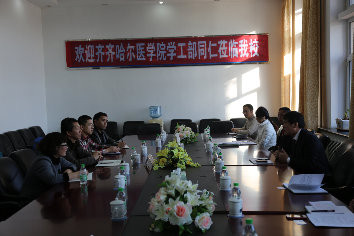 2014年11月7日,齐齐哈尔医学院学生处处长丛喜权等一行4人来访我校,我校学生工作处所有教职员工在2号办公楼学生工作处会议室接待了来宾,并召开了两校学生工作交流会。
