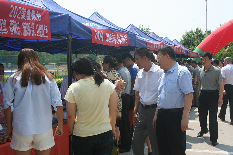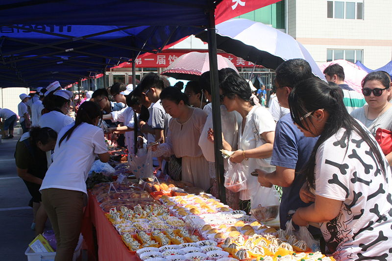 “美食展”在一片鞭炮声中,正式拉开帷幕,校领导、公司领导和学校部分教职工参加了本次活动。
