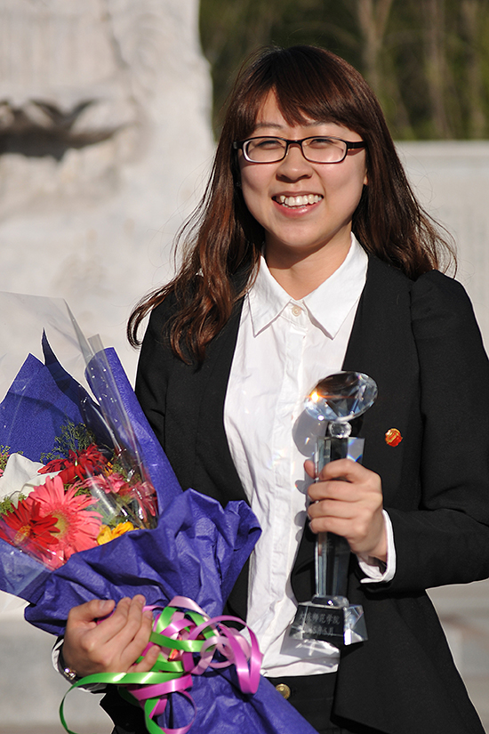 庞思雨,女,文学院2011级对外汉语一班学生。大学四年从未间断过做志愿服务,在铁人精神进课堂活动中,参与了教材编写。在“女大学生与中国梦”活动中,帮助杜尔伯特蒙古族学校的一名学生。在关爱自闭症儿童的活动中,和特殊学校的老师一起帮助自闭症儿童募集善款,参与了义卖、义演等。