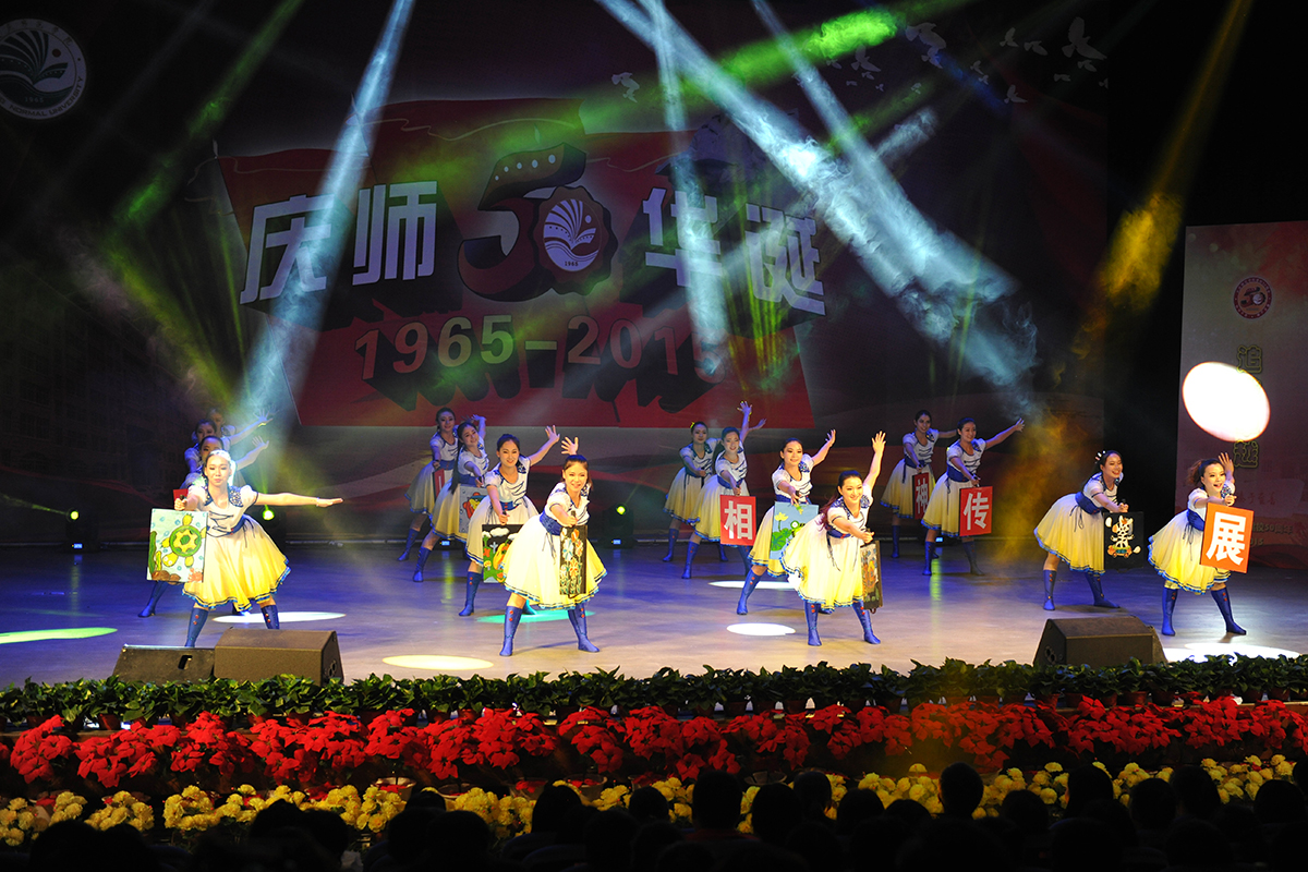 五十载峥嵘岁月,弦歌不辍;五十载薪火相传、桃李芬芳。9月24日,到处洋溢着喜庆、欢乐的庆师迎来了五十华诞,15时45分,50周年校庆文艺演出——《历程》在大学生活动中心拉开帷幕。