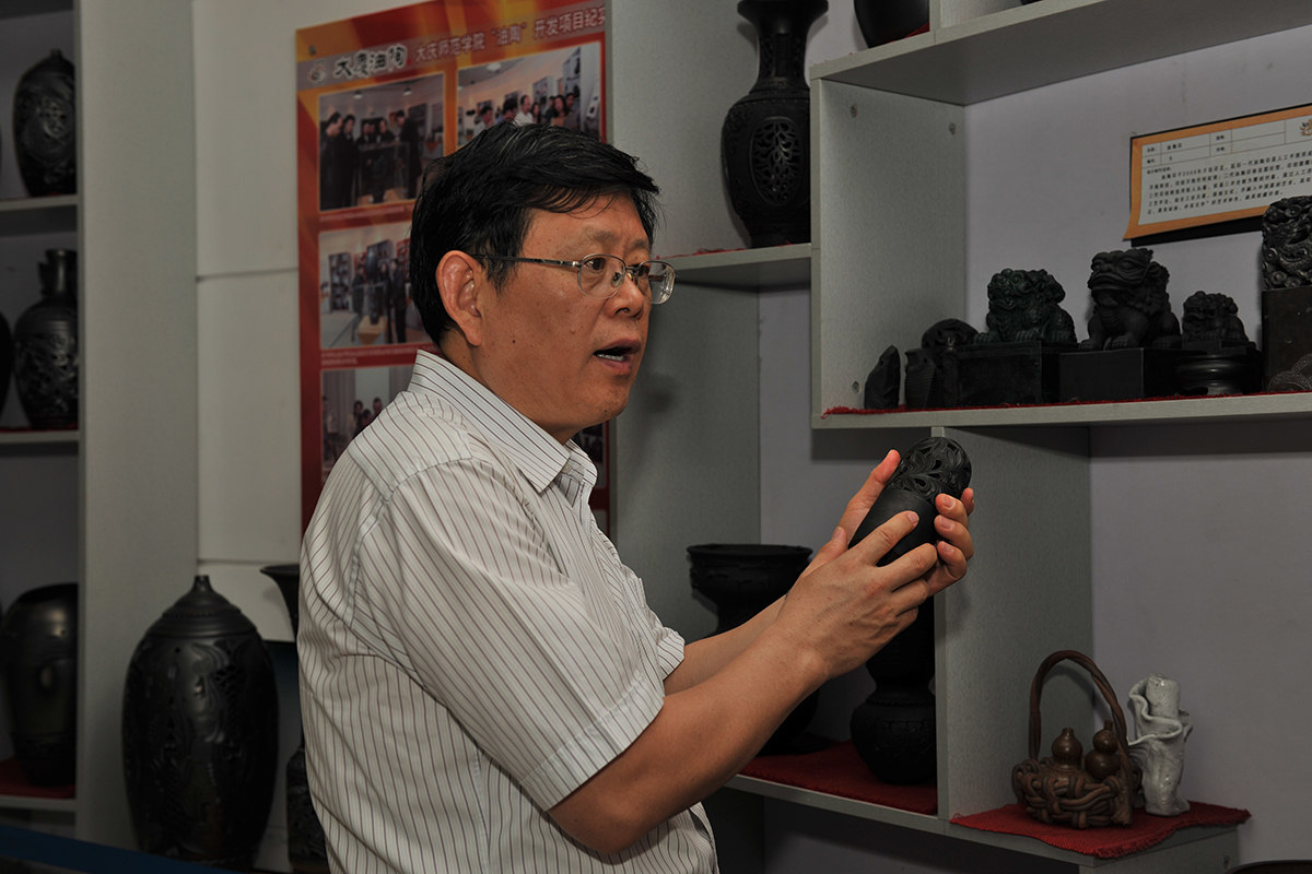 报告结束后,在学校领导的陪同下,王炳林教授一行参观了我校大庆精神文献研究中心和大庆油陶陈列室。在大庆精神文献研究中心,大庆会战珍贵历史文献深深吸引了他们。在听完我校“大庆石油会战口述史”项目讲解后,他表示,“大庆石油会战口述史”项目的成果本身就是一本非常重要的德育教材,将其运用于高校大学生思想政治教育,活化育人载体、挖掘育人资源具有十分重要的意义。研究基地珍贵的文献资料以及油陶作品对于大庆精神研究和大庆特色的展示也具有非常重要的意义。
