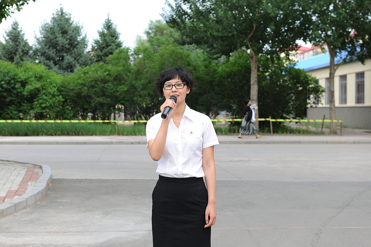 揭幕仪式上,教师代表楚丽丽和毕业生代表尹婷婷分别发言。楚丽丽老师代表学校对2016届全体毕业生表示衷心感谢,希望2016届毕业生能够做到全面发展、追求卓越,努力使自己成为一个有思想、有担当的人;做到自强不息、臻于至善,牢记母校的校训,在未来的学习和工作岗位上,时刻勿忘自己曾是“庆师人”,努力争做铁人精神的践行者和传承者。
