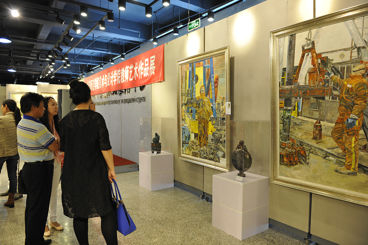 本次展览共展出绘画专业教师绘画书法作品90幅,陶艺作品25件。参展作品多以大庆特有的地域文化为主题,作品带有浓郁的地域风情,注入了创作者热爱自然、热爱生活、热爱家乡的思想感情。作品既有再现大庆精神和石油会战场景,表达作者对创业人的敬仰,对创业岁月的缅怀和优良传统的传承,又有描绘龙江大地的田野、森林、湿地、花鸟等自然景观,表达作者对大美龙江的热爱。作品无论是在题材的选择,风格的表现,还是形式语言的确定,情感的表达,都充分展现了黑龙江独有的文化特质,歌颂了大美龙江的地域特色和黑土地的风土人情。