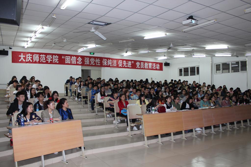 为认真贯彻学校“两学一做”学习教育座谈会精神,学习以铁人王进喜、“新时期铁人”王启民、“大庆新铁人”李新民为代表的石油英模事迹,使学生党员对照典型查找不足,对照优秀品质树立党员良好形象。5月11日下午,党委组织部(党校)在主楼阶梯教室举办“固信念 强党性 保纯洁促先进”党员教育活动第十四场讲座,邀请美术与设计学院学生党支部书记孙琦就学习“铁人”王进喜的优秀品质做专题讲座,2013级、2014级150余名学生党员参加此次活动。