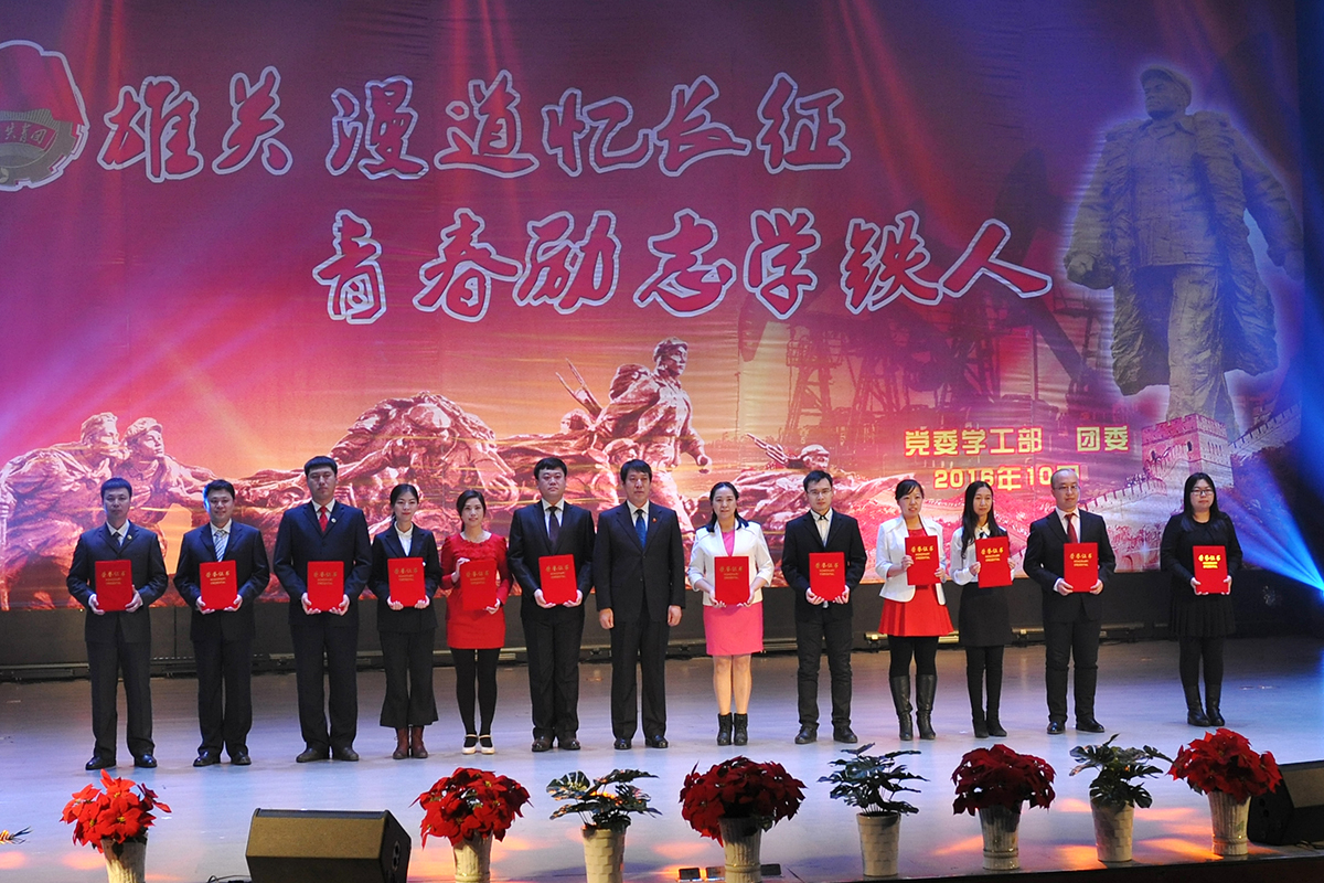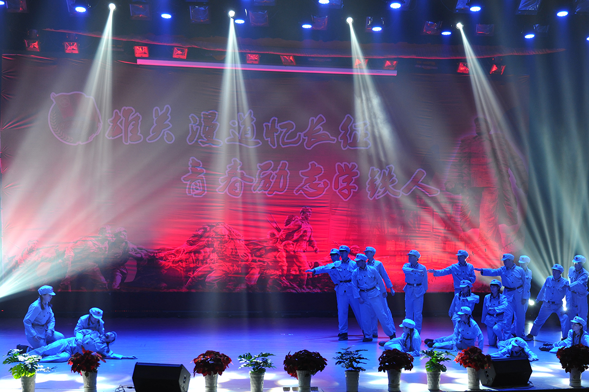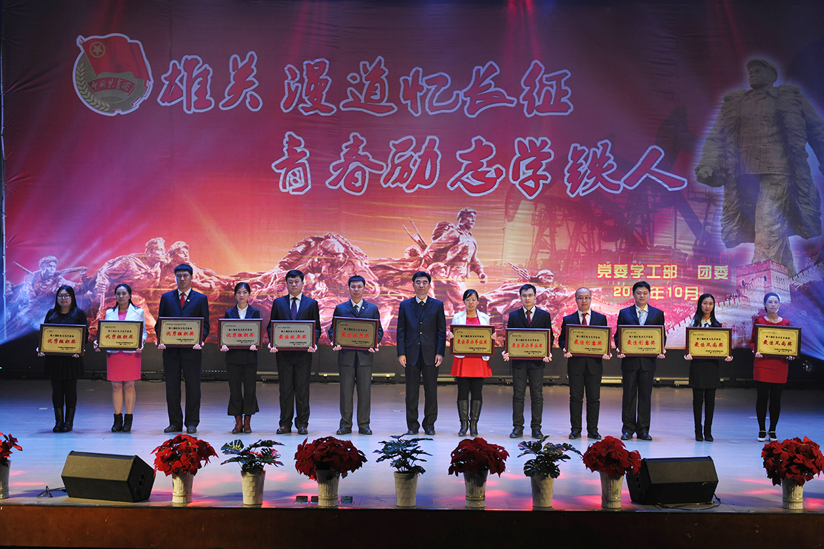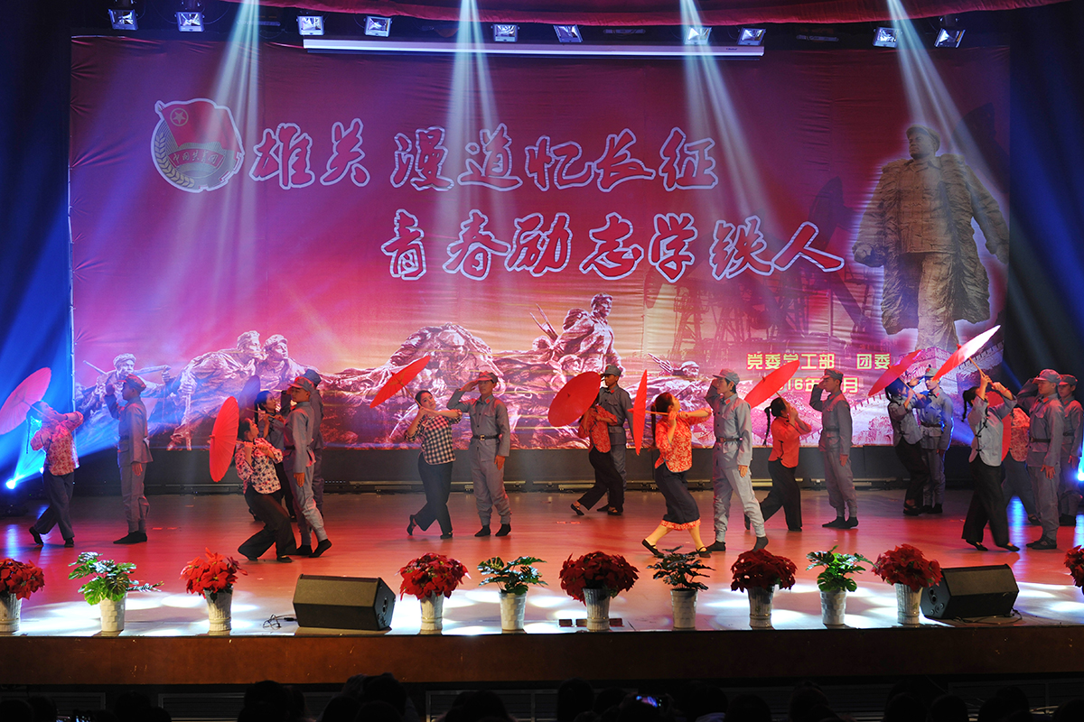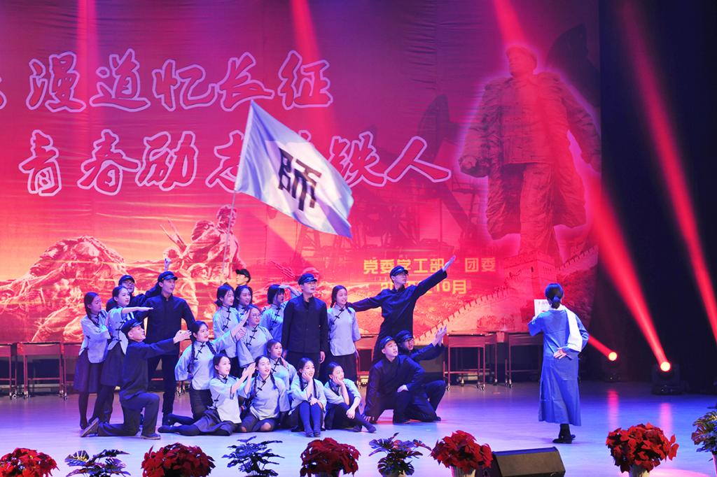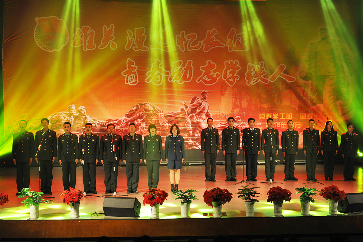 颁奖典礼上,“庆师好声音”的优秀选手演唱了歌曲《石油人的歌》;由各学院选送的《十送红军》、《过雪山草地》等舞蹈再现了长征途中红军将士英勇奋战、克服艰难险阻、不畏牺牲的伟大长征精神,充满正能量的表演感动了在场的所有观众;《八班教室》仿佛带领我们再次回到了那个风雨飘摇的时代,青年学子们把国家与民族的命运与自己系在了一起;我校退伍复学学生演唱了《强军战歌》,他们用铿锵恢弘的旋律、激情澎湃的歌声展现了为国争光、为民族争气的坚定决心和豪情壮志;由党委副书记刘恒、党总支书记、学生党支部书记、团总支书记和辅导员共同演绎的红色歌曲联唱将会场气氛推向了高潮;最后,在全场齐唱《国歌》中颁奖典礼圆满落幕。