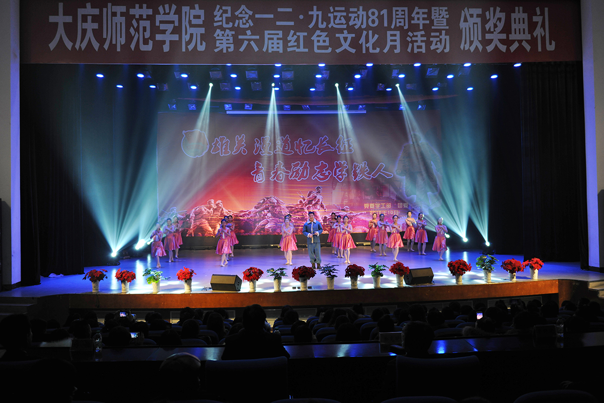 第六届红色文化月活动在学生工作部、团委与各学院团总支的共同努力下,共举办了“红色礼赞”歌咏比赛、“重拾红色记忆,再讲铁人诗话”普通话风采大赛、“百湖之城,美在大庆”旅游导游中英文解说大赛、“一红到底”知识竞赛、“重温红色历史,不忘青春使命”演讲比赛、“雄关漫道,不忘初心”数字媒体大赛、“筑今•烁庆师,逐梦•追卓越”红色短信征集评选活动、“庆师好声音”经典歌曲比赛、“扬铁人精神旗帜,展庆师学子风采”书法、绘画比赛等9项系列活动,共有1120余名选手参赛,约有8200人次受到教育。整个文化月活动比赛共评出一等奖17个,二等奖36个,三等奖61个,优秀奖52个。文学院、教师教育学院、计算机科学与信息技术学院、经济管理学院获得优秀组织奖;音乐与舞蹈学院、体育学院获得最佳效果奖;法学院、外国语学院获得最佳承办单位奖;化学工程学院、生物工程学院获得最佳创意奖;机电工程学院、美术与设计学院获得最佳风尚奖。