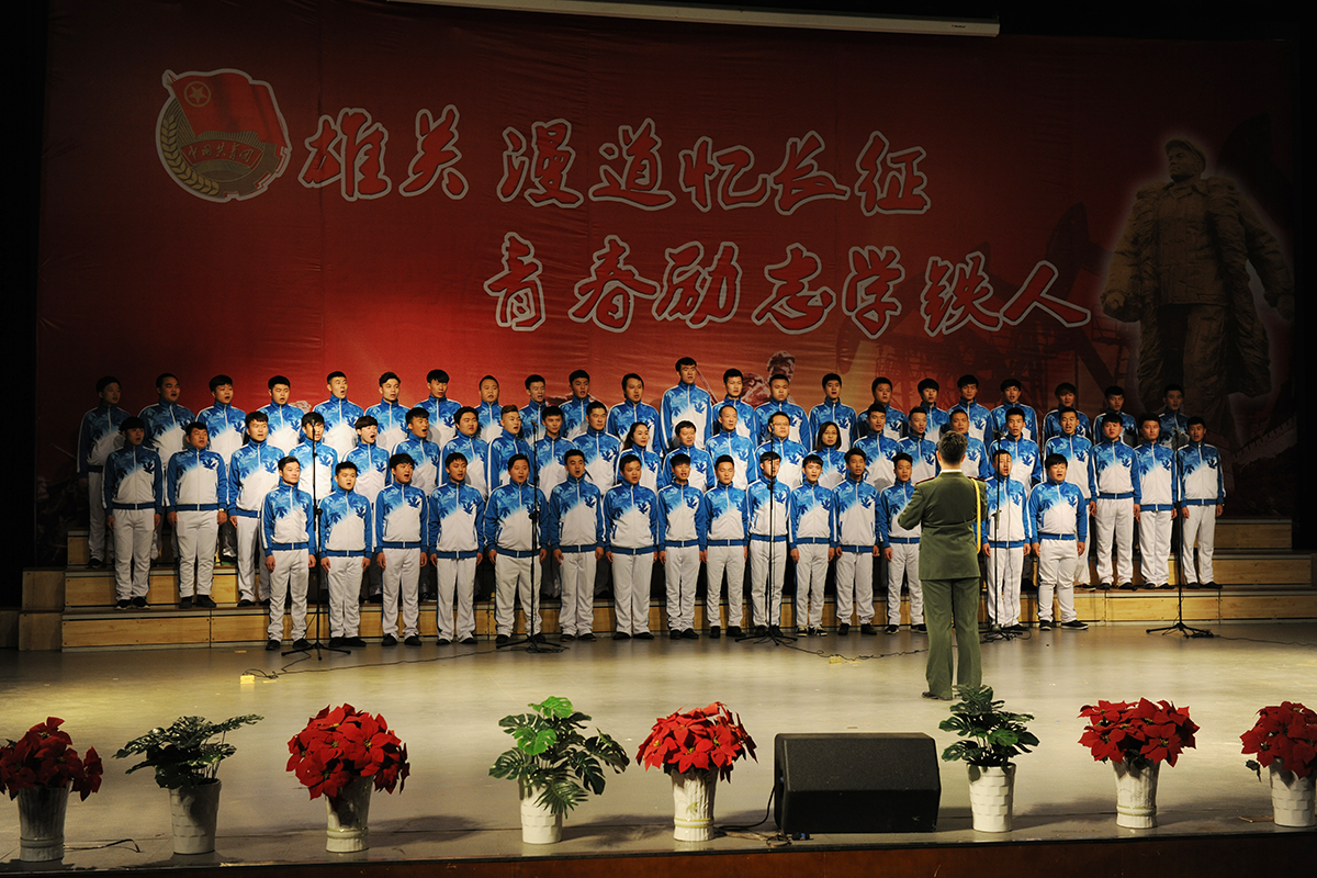 化学工程学院演唱的《铁人还在我们行列》《三大纪律八项注意》大气磅礴,使在场的所有观众又重温了那段激情燃烧的岁月。