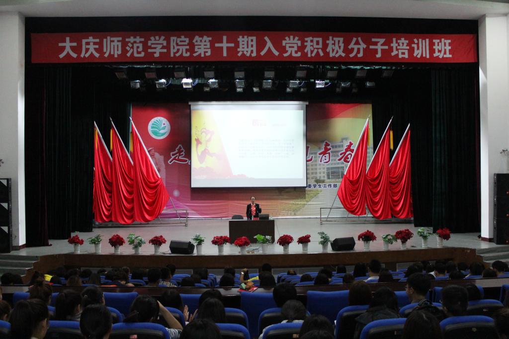 在集中授课中,郭元阳老师为学员们重点讲述新民主主义革命时期中国共产党的建立以及在中国共产党领导下进行的土地革命、抗日战争和解放战争的艰苦卓绝的历程,使学员们了解党史、热爱党史,认识到学习党史的必要性和经常性;付晓东老师以《筑梦路上你我同行》为题,为同学们生动阐释了中国共产党的性质、根本宗旨和指导思想,同时列举大量学生身边的例子鼓励积极分子们勇当实现中国梦的急先锋;思政部赵桂英书记和刘晓华老师分别通过对“四信”和大庆精神铁人精神的讲解,将党的理论与实际相结合,将大庆精神与大学生现实生活相结合,使学员增强对共产主义的信仰和对党的热爱;文学院学生党支部书记楚丽丽和组织部刘彰基老师还为学员做了端正入党动机和入党程序为主要内容的讲座。课上全体学员还观看了纪录片《信仰》。各学院学生党支部在课后组织参加培训的学员进行座谈。9月4日上午,党校组织开展闭卷考核测试,512名入党积极分子通过考核,合格率为76%。