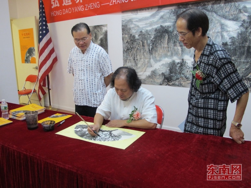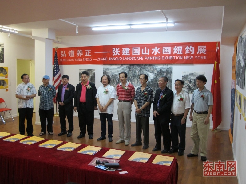 东南网8月31日讯(本网特约记者 纽约墨人) 当地时间8月30日,由美东华人社团联合总会、国际海峡文化交流协会、美国中国书法家协会、美国中国美术家协会、中国书画世界行纽约委员会、北京听雪斋文化传播有限公司等主办的“弘道养正——张建国山水画·纽约展”在美国纽约曼哈顿勿街7号四楼美东华人社团联合总会会址举行。开幕式由中国书画美国纽约委员会主席李兆银先生主持。纽约市议员顾雅明代表(纽约皇后画院院长)刘比华、美东华人社团联合总会名誉主席杨功德、中美友好协会主席卢天星,国际海峡文化交流总会主席杨银官、全球炎黄子孙爱国促进会理事长陈兆实、美国华人艺术家协会会长蔡楚夫、美国中国书法家协会主席李兆银、美国中国美术家协会主席黄春云、美国闽侯工商总会主席赵燕山、纽约书法家王孔源,关祖洞、林金泉、陈伟区等30多位嘉宾参加活动。