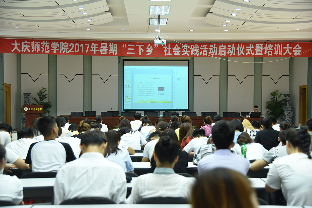 6月28日下午,我校2017年暑期“三下乡”社会实践活动启动仪式暨培训大会在铁人讲堂举行。学生工作处、团委老师及各学院团总支书记、集中社会实践团队代表参加此次会议。