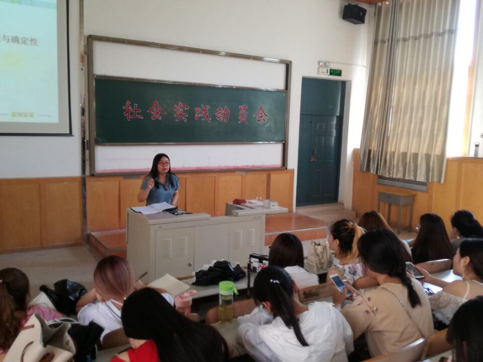 楚丽丽老师向与会人员介绍了我校2017年暑期社会实践活动情况,并对社会实践过程中需要注意的问题进行详细说明,就“如何开展社会实践”向与会人员提出了期望与要求,特别强调了团队人员的安全问题。