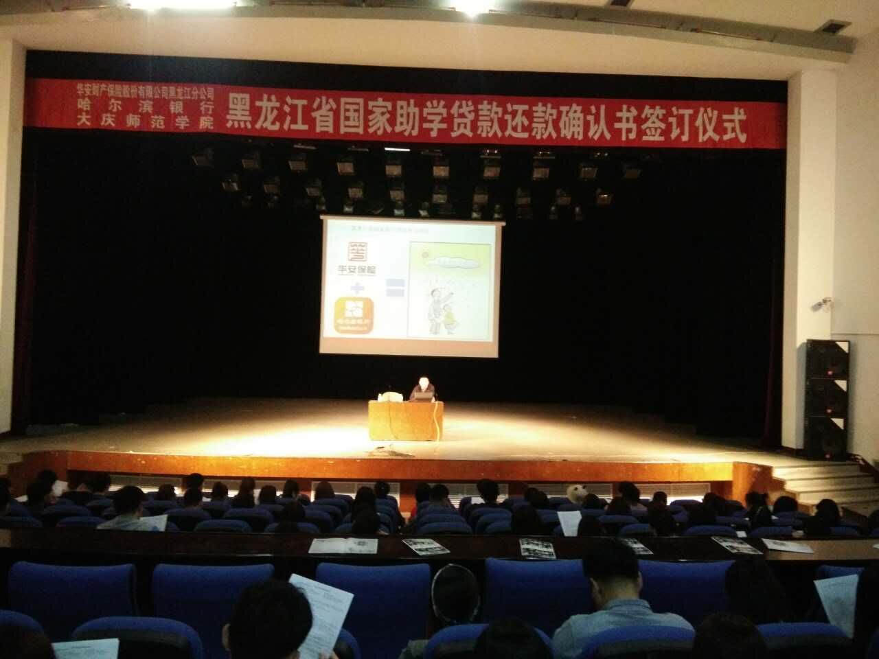 会上,华安保险公司哈尔滨分公司信保部主任毕彦琛对助学贷款如何还款、什么时间还款、还款协议和展期协议主要的内容,诚信政策宣讲。以实例展示了失信的表现、后果,并介绍补救的方式,特别强调了诚信还贷的重要性。他表示避免拖欠贷款、逾期还款,及时更新通讯信息、保持通畅联系非常重要。随后,毕主任对还款确认书填写要求进行了进一步的说明,并回答了同学们的疑问。